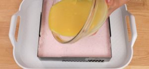 Když krém ztuhnul a má želatinovou podobu, může se polít polevou. Na tu se použije rozlámaná bílá čokoláda, která se začne rozpouštět ve vodní lázni. K ní se poté přidá smetana. Po několika zamícháních by se měla směs propojit. Nyní se nalije a rozetře na krém.