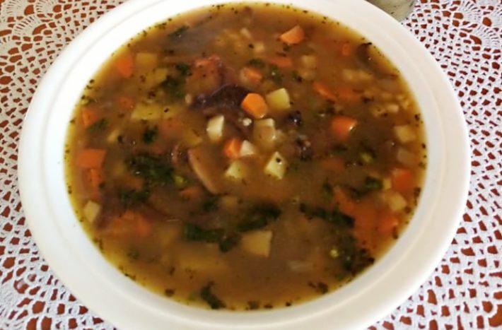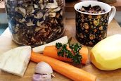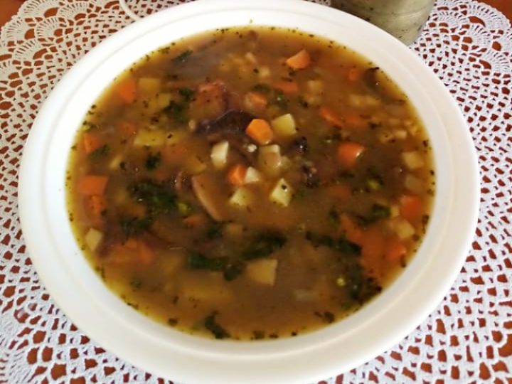 Houbová bramboračka s čočkou a pohankou - postup přípravy