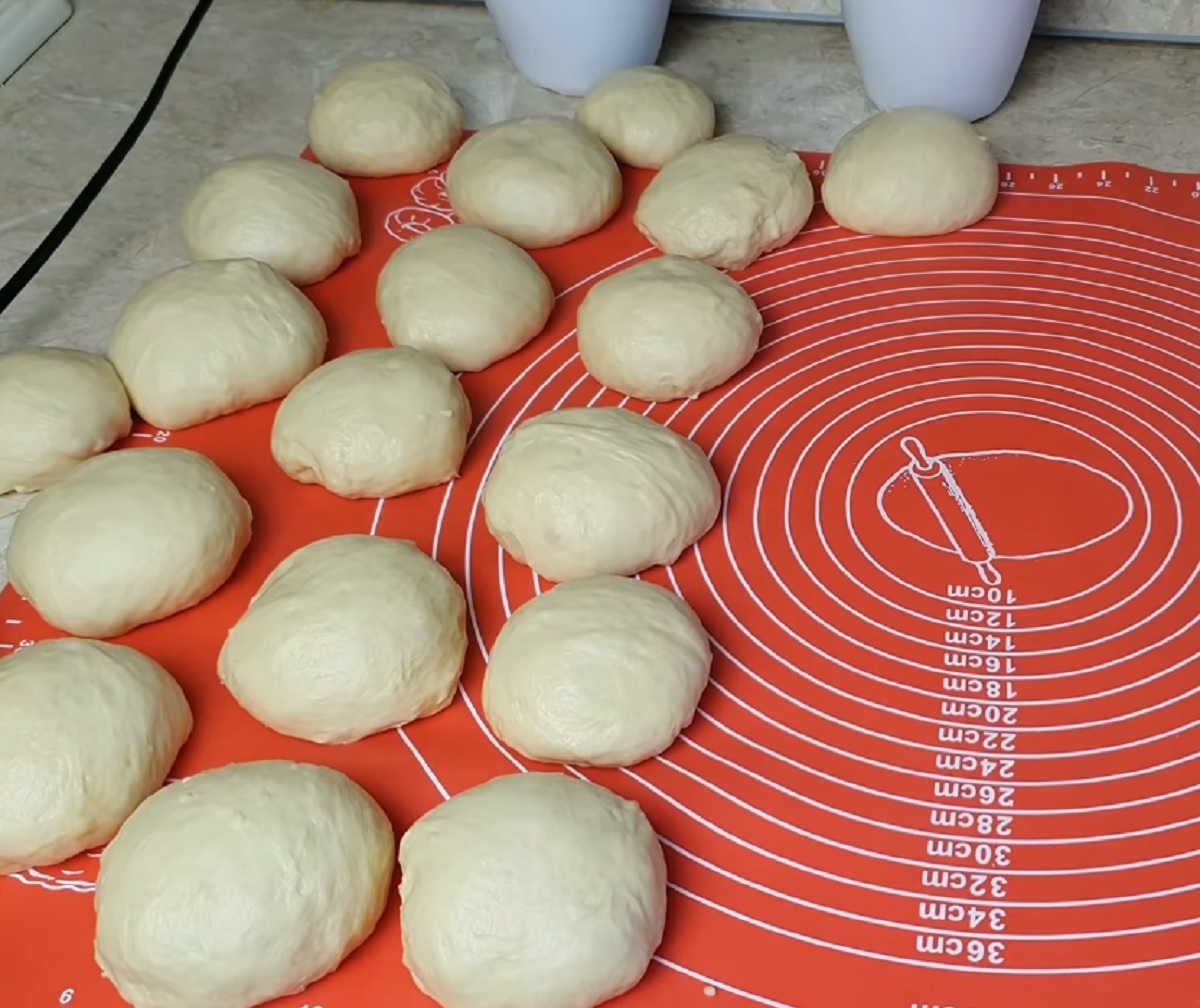 Těsto rozdělte na stejné kousky (cca 18 kusů) a vytvarujte z nich kuličky.