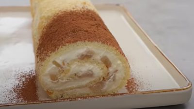 Tip: Pokud chcete, aby náplň více ztuhla, roládu vložte na pár minut do lednice před tím, než ji budete servírovat. Každou porci můžete ozdobit několika lístky máty.