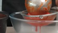 Rajčata omyjte, zbavte je stopek a rozemelte je stejně, jako oloupanou cibuli s česnekem. Směs vložte do hrnce a vařte ji 10 minut bez pokličky.