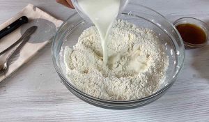 V první řadě si připravte velkou, hlubokou mísu. Vložte do ní prosátou mouku, připravený kvásek, špetku vanilky, sůl a cukr. Důkladně všechny ingredience promíchejte. Doprostřed moučné směsi udělejte důlek a nalijte do něj 240 ml teplého mléka, olej, přidejte citronovou kůru, med a rozklepněte jedno vejce. Důkladně promíchejte a začněte s hnětením, které by mělo trvat asi 7 minut.