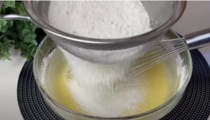 Rozklepněte si do mísy vejce a přidejte cukr. Pokud máte menší vejce, použijte 4 kusy. Poté je vyšlehejte do pěny. Následně k nim zašlehejte slunečnicový olej, jogurt, citronovou šťávu a kůru z jednoho citronu. Nakonec postupně přidejte prosátou mouku a prášek do pečiva a vymíchejte těsto.