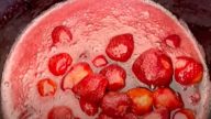 Jahody vraťte zpět do hrnce a pokračujte ve vaření 10–15 minut. Poté přidejte růžovou vodu a hrnec odstavte z tepla.