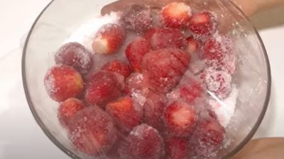 Jahody očistěte, zbavte je zelených částí, smíchejte je s cukrem, vodou, citronovou šťávou a zakryjte je potravinovou fólií. Následně je nechte přes noc odpočívat v lednici.