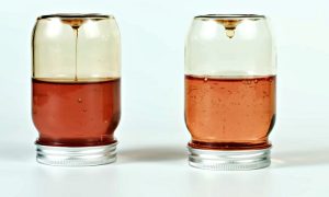 Připravte si dvě průhledné sklenice a nalijte do nich vodu o pokojové teplotě. Do každé pak nalijte asi půl panáku medu. Zatímco pravý med se bude krásně stáčet do soudržné kopičky na dně sklenice, falešný med se rovnou začne rozpouštět.