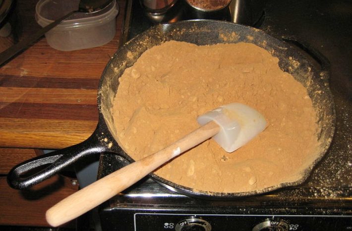 Ve chvíli, kdy dosáhnete požadované barvy, můžete osmaženou mouku buďto uložit do uzavíratelné nádoby na suchém a tmavém místě, anebo ji rovnou použít.