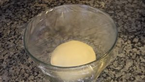 Cukr smíchejte s mletou skořicí. Rozpusťte 2 polévkové lžíce másla a všechny přísady si připravte v miskách k ruce. Vykynuté těsto propracujte a rozdělte ho na 8 stejných částí, z nichž zformujte kuličky.