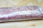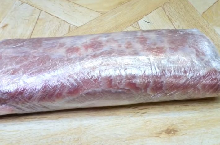 Sůl je velmi důležitá, protože se jedná o hlavní surovinu, kterou maso potřebujete k dokonalému dochucení. Proto musí být skutečně všude, aby bylo maso správně dochucené. Poté špalek masa zabalte do několika vrstev potravinářské fólie a dejte na týden do lednice. Maso se v soli bude marinovat a budete s ním moci potom mnohem snáze pracovat. Recept sice zabere celý týden, ale výsledek bude stát za to.