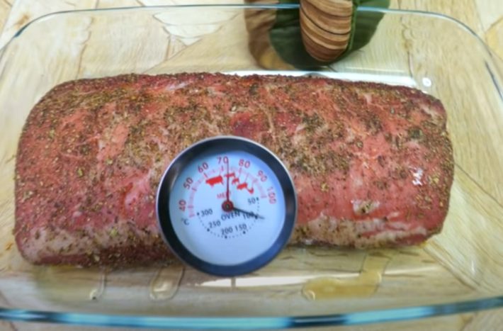 Vložte maso do zapékací mísy a takto ho vložte do studené trouby. Nastavte ji na 70 stupňů. Po hodině zvyšte na 80 stupňů. Další 2 hodiny neotvírejte dvířka trouby. Poté zkontrolujte teplotu masa. Nesmí přesáhnout 74 stupňů. Pokračujte další hodinu a půl.