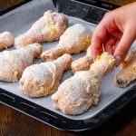 Plech s vyskládaným masem zamíří do trouby, vyhřáté na 180 stupňů Celsia. Při této teplotě se maso peče zhruba 45 minut. Tato doba zaručí, že maso bude měkké a šťavnaté a díky použité strouhance se na stehnech vytvoří také dokonalá křupavá kůrka.