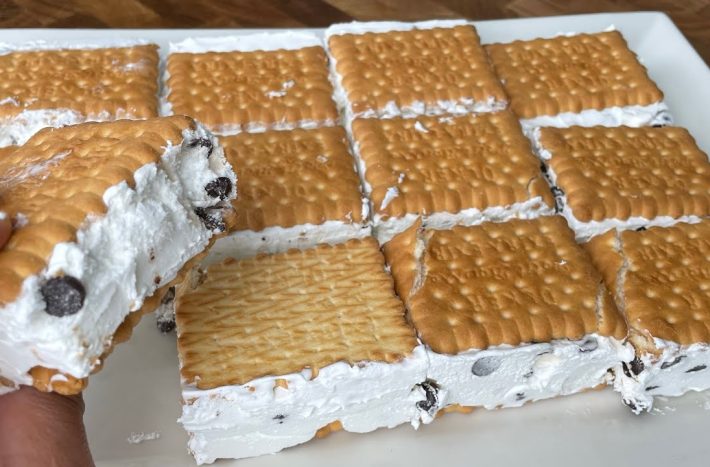 Nachystejte si dezertní tác a dejte na něj dortový ráfek (19×28 cm). Vyskládejte na dno 12 Bebe sušenek, naneste na ně šlehačkový krém a navrch dejte dalších 12 Bebe sušenek. Vložte hotový dezert do lednice alespoň na tři hodiny a poté ho můžete podávat, dobrou chuť!