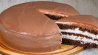 Náplň rozetřete na korpus. Dejte na hodinu chladit. Šlehačku vyšlehejte do tuha a potřete vrchní vrstvu. Po zchladnutí do druhého dne v chladničce můžete podávat.