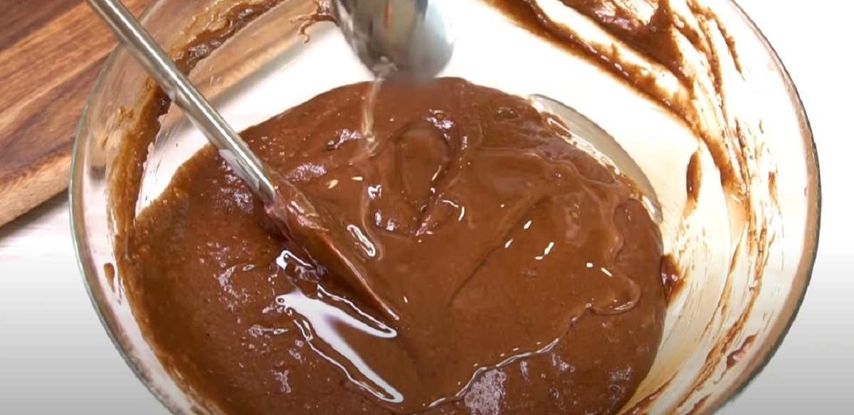 Posléze vyjměte čokoládový korpus a po vychladnutí rozřízněte na tři stejně široké pláty.