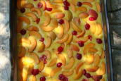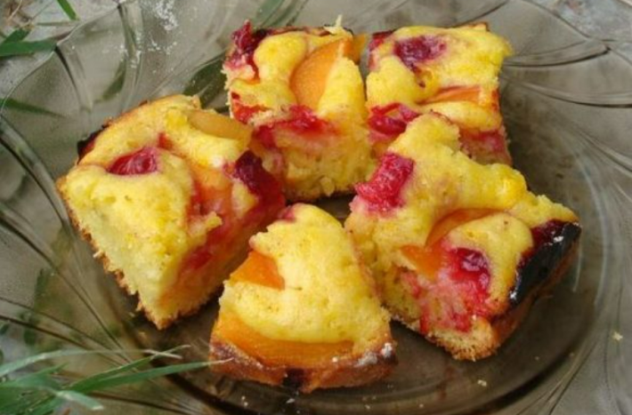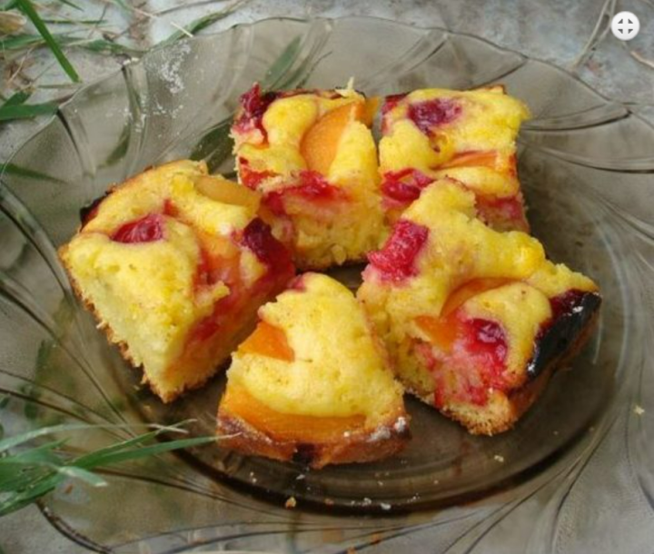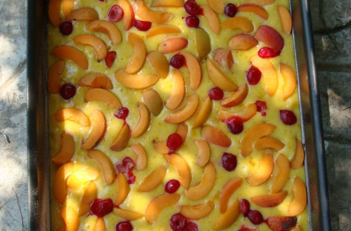Jednoduchý koláč na plech s meruňkami a třešněmi - postup přípravy