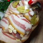 Do té budete totiž maso vrstvit spolu s česnekem. Na dno nádoby tedy naukládejte česnek, na který uložíte vrstvu masa nebo slaniny kůží směrem dolů. Každou vrstvu masa posypte česnekem až po vrch nádoby. Nakonec pouze nalijte studený nálev do misky tak, aby bylo maso zcela ponořené. Přidejte ještě bobkový list a koření z nálevu. Poté nádobu řádně uzavřete a nechte dva dny ležet na místě s pokojovou teplotou.