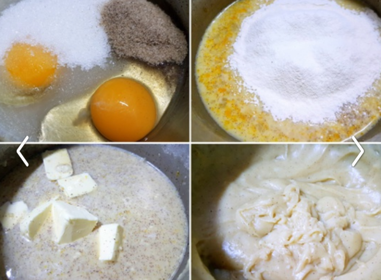 Nejprve připravte krém. V kastrůlku smíchejte dvě vajíčka, špetku soli, 200 gramů cukru a vanilkový cukr. Přilijte mléko a mouku a důkladně promíchejte. Postavte na kamna a na mírném ohni zahřívejte za stálého míchání, dokud krém nezhoustne. Přimíchejte máslo. Odstavte ho z ohně a nechte vychladnout.