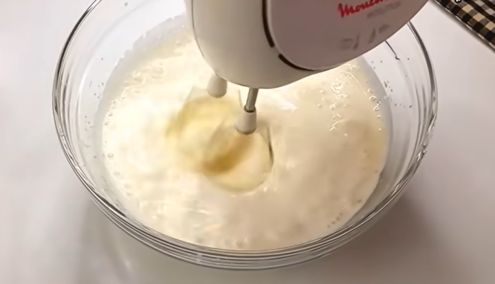 Vyklepněte dvě vajíčka do hluboké misky. Přidejte cukr a vanilkový cukr, špetku soli a elektrickým šlehačem vše vyšlehejte do nadýchané a jemné pěny bělavé barvy. Pokračujte ve šlehání a tenkým pramínkem k vaječné hmotě začněte přilévat rostlinný olej, který do nich důkladně zamixujte. Za nepřetržitého šlehání přilijte také půl skleničky mléka.