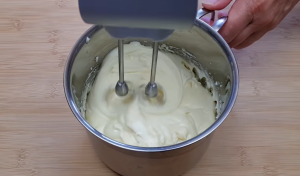 Do kastrůlku vložte 100 gramů změklého másla, přidejte 2 lžičky vanilkového cukru a elektrickým šlehačem vyšlehejte do nadýchaného krému. Vyšlehejte i vychlazený pudinkový krém, který pak ve dvou fázích vmíchejte do máslové hmoty, přičemž pokaždé jej důkladně zašlehejte.