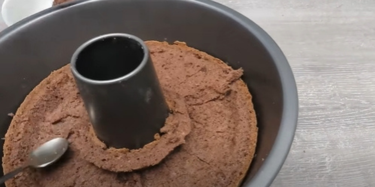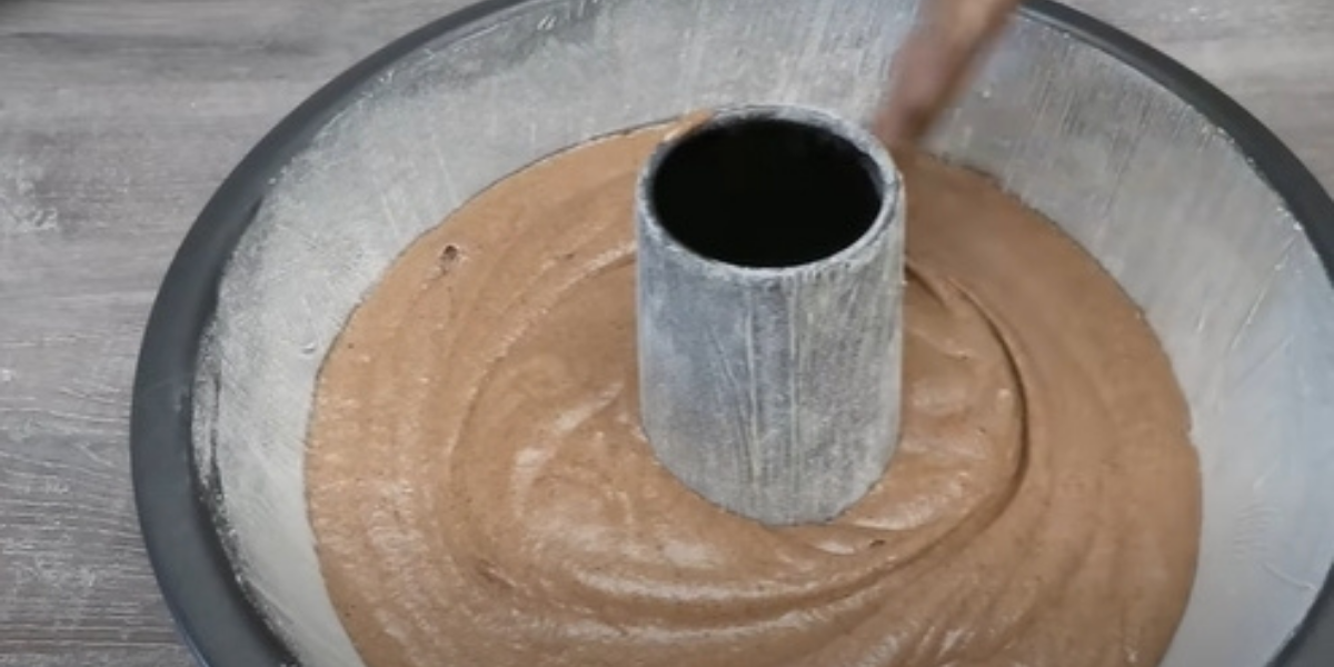 Hotovou kakaovou hmotu vlijte do formy na bábovku a stěrkou vyrovnejte jeho povrch.