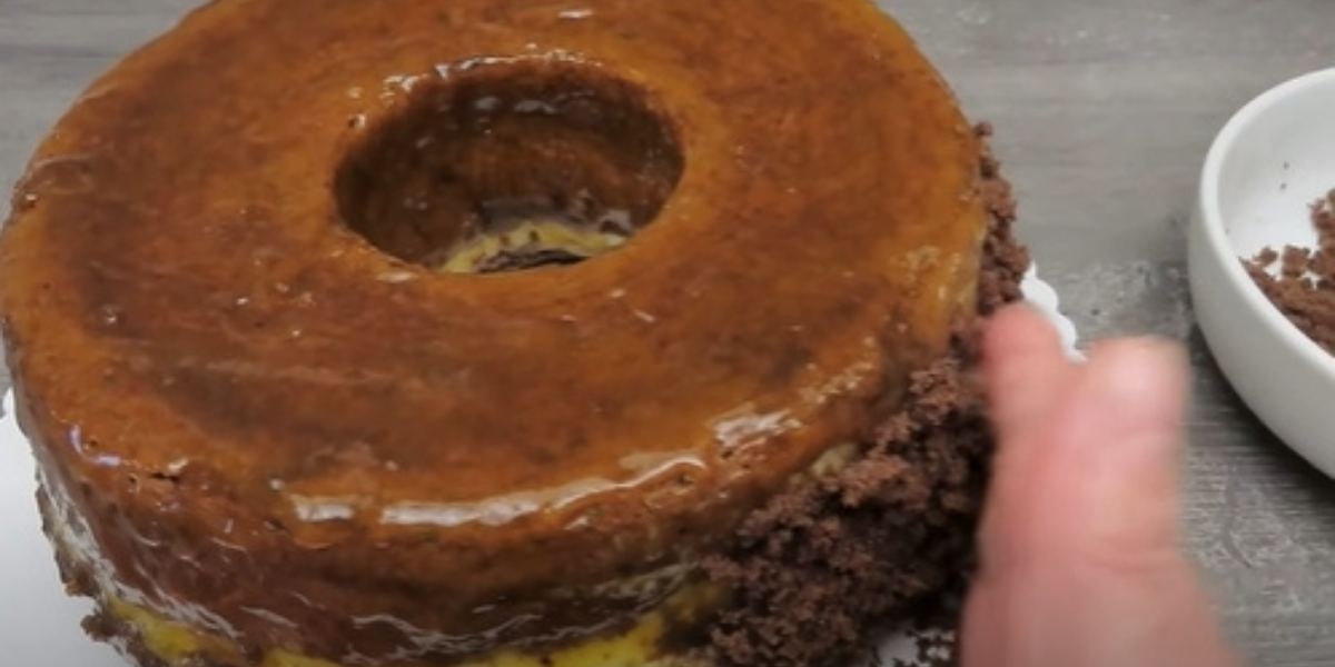 Vydlabanou střídku rozdrťte na prach a pokryjte jím bočnice po obvodu bábovky.