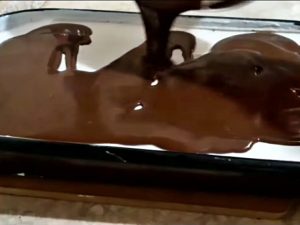 Nakonec přelijte povrch dortu připraveným čokoládovým krémem, který rovněž rozetřete do rovnoměrné a hladké vrstvy, a vraťte dort zpátky do lednice, kde ho nechte přes noc uležet. Druhý den už stačí jenom nakrájet a podávat spolu s šálkem voňavého čaje nebo kávy.