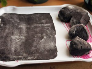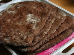 Z každého z nich vyválejte plát o rozměrech cca 20 x 25 cm a pečte v předehřáté troubě při teplotě 200 °C asi pět minut.