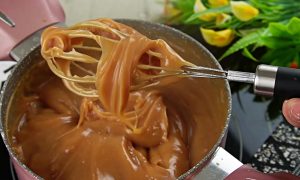 Pokračujte v míchání, dokud směs nezíská konzistenci hustého pudinku. V tu chvíli ji odstavte ze sporáku, přelijte ji do studené mísy, zakryjte fólií tak, aby ležela přímo na povrchu a nevytvořil se tak škraloup, a nechte karamel vychladnout.