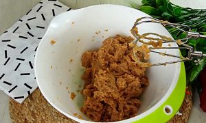 Mezitím nechte změknout máslo a vyšlehejte ho ručním šlehačem do nadýchaného krému. Vychlazený karamelový pudink v misce rozšlehejte šlehačem do jemné textury.
