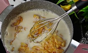 Kukuřičný škrob rozpusťte v troše mléka, dobře směs promíchejte a prozatím ji odložte stranou.