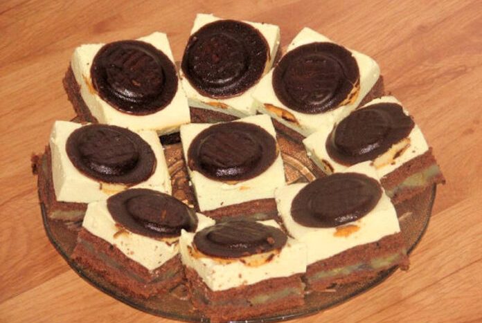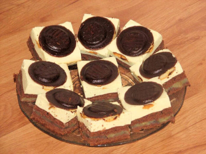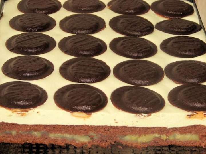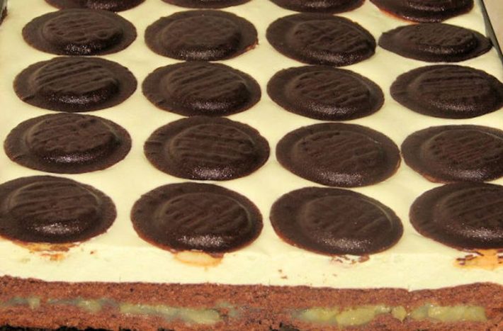 Nakonec vezměte sušenky Jaffa a rozložte je po celé ploše na šlehačkovou vrstvu. Takto připravený koláč vložte do ledničky na 24 hodin, aby ztuhl. Pak už stačí jen naporcovat a servírovat.