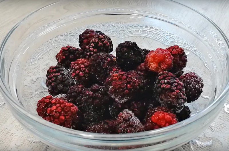 Čerstvé ovoce dobře umyjte a zbavte je stopek a zbytků listí. Vložte ho do mixéru, přidejte jednu polévkovou lžíci škrobu a 50 gramů cukru a vše rozmixujte do hladké konzistence. Výsledkem by mělo být husté ostružinové pyré.