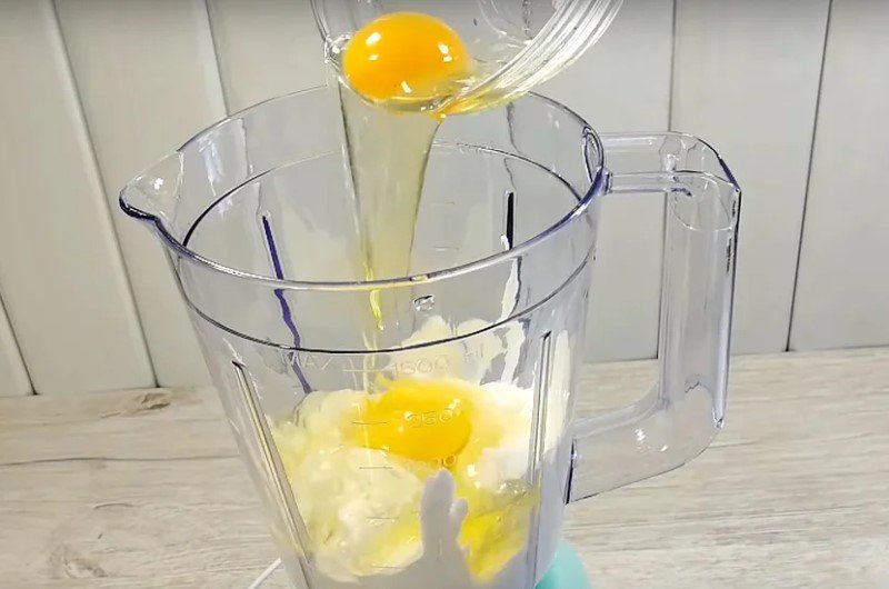 Nyní vložte do mísy šest set gramů zakysané smetany, vyklepněte k ní dvě vajíčka, přidejte vanilkový cukr a dvě polévkové lžíce škrobu. Elektrickým šlehačem či ponorným mixérem vše důkladně promíchejte tak, aby vám v konzistenci nezůstaly žádné hrudky. (Všechny přísady také můžete vhodit rovnou do mixéru a jednoduše je umixovat).