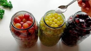 Sklenice několikrát protřepejte, aby se kyselina rozpustila. Zabalte je do deky a nechte celý den pomalu chladnout. Poté zkontrolujte víčka. Jestliže jsou dobře přichycena, hrozny na chladném místě ve sklenicích vydrží rok.