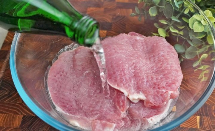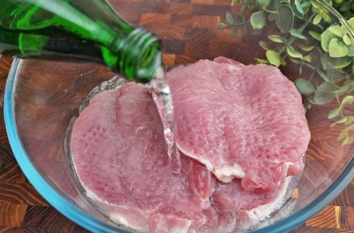 Pokud chcete mít krásně šťavnaté kotlety, je dobrým nápadem je namarinovat ve speciální marinádě z perlivé vody a pak je usmažit s cibulí. Skvělé jsou se salátem z červené řepy.