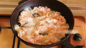 Umyjte jablka a oloupejte z nich slupku. Rozdělte je na čtvrtiny a vykrojte zbytky jadřince. Dužninu pak nastrouhejte na hrubém struhadle. Na kamnech rozehřejte pánev s trochou másla a když je horké, vhoďte na něj strouhaná jablka. Zasypejte cukrem a za stálého míchání smažte, dokud nezískáte krémovou hmotu. Tu pak přeneste do hluboké misky a nechte vychladnout.