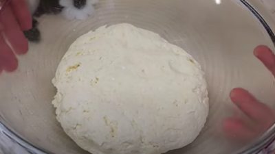 Tvaroh smíchejte se změklým máslem. Jakmile se ingredience propojí, přidejte k nim směs jedlé sody a citronové šťávy. Nakonec do směsi vmíchejte mouku a vytvořte těsto, které zakryjte a vložte na 30 minut do lednice.