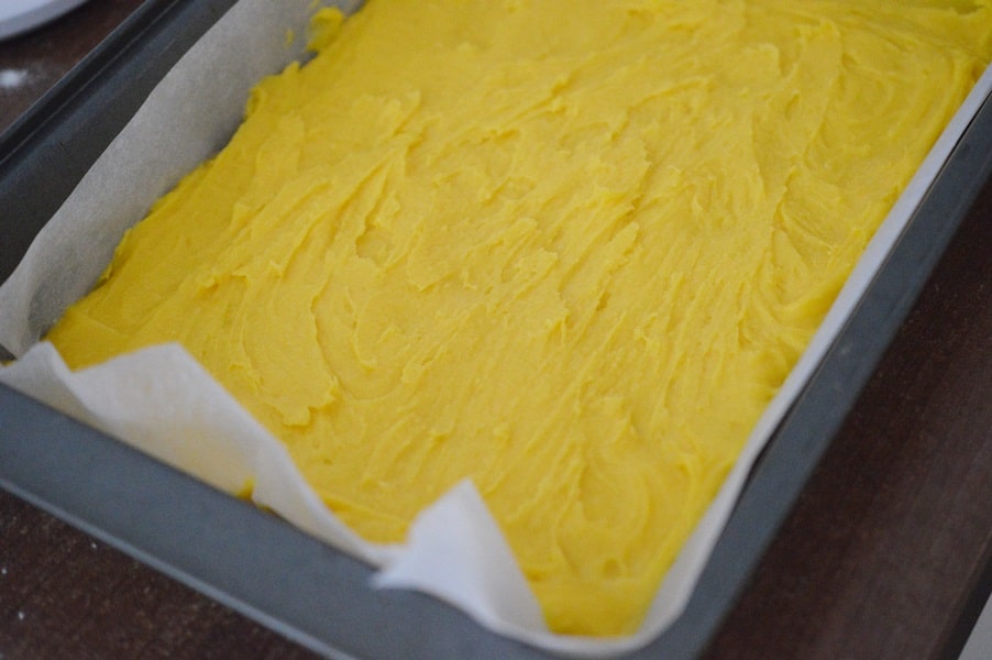 V momentu, kdy budete mít hotový korpus i krém, můžete postupně začít kompletovat dort. Na upečené těsto navrstvěte vanilkovou náplň a rozetřete po celém povrchu.
