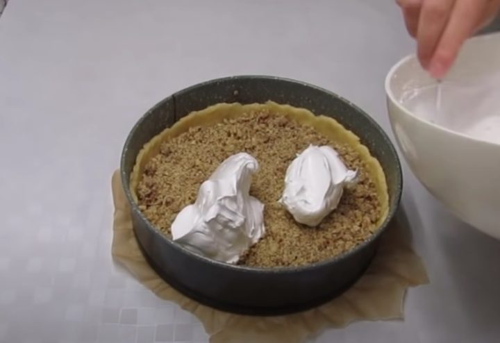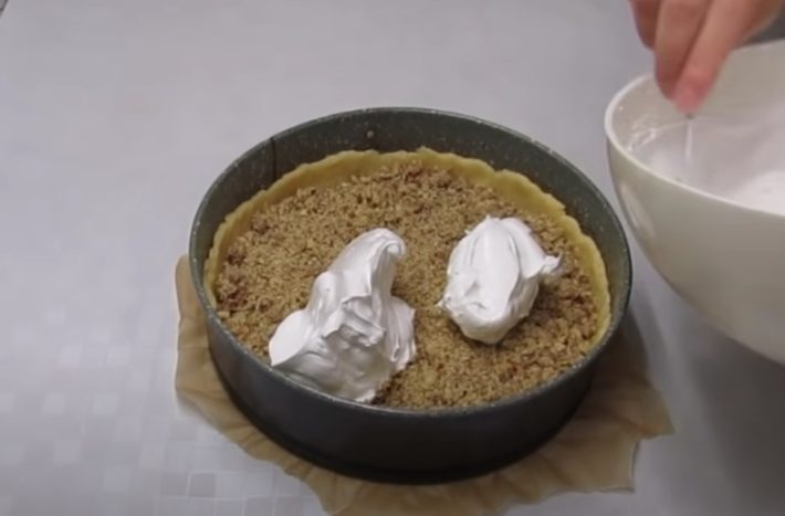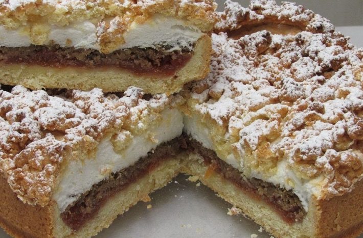 Křehký koláč s marmeládou, ořechy a sněhovou vrstvou - postup přípravy