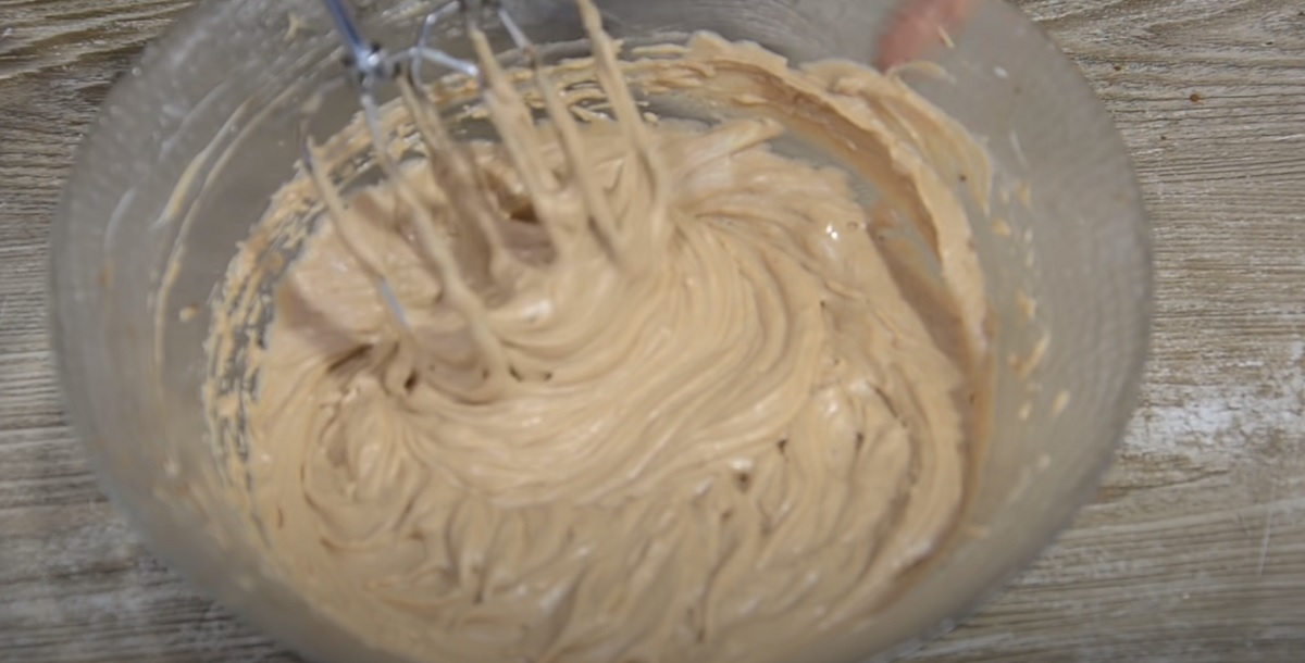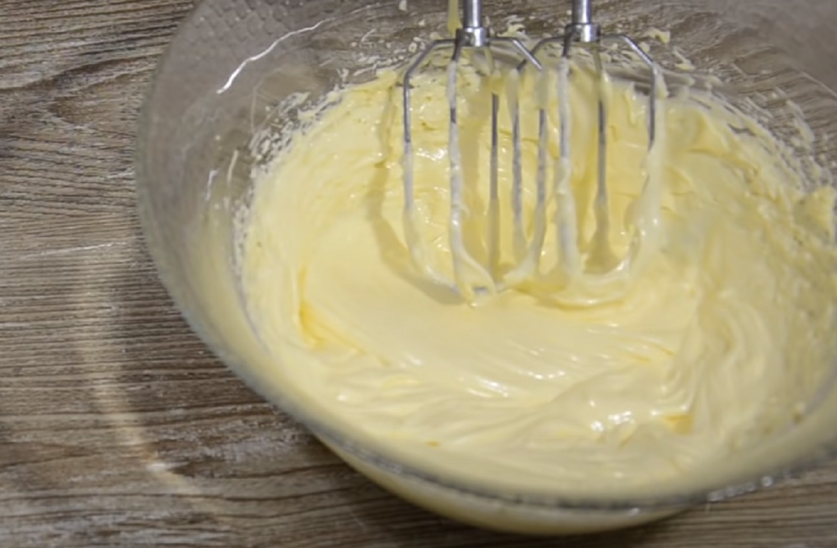 Krém sundejte z ohně a stále míchejte. Poté zakryjte potravinovou fólií a nechte vychladnout. Míchejte měkké máslo mixérem asi 4-5 minut, dokud nebude nadýchané.