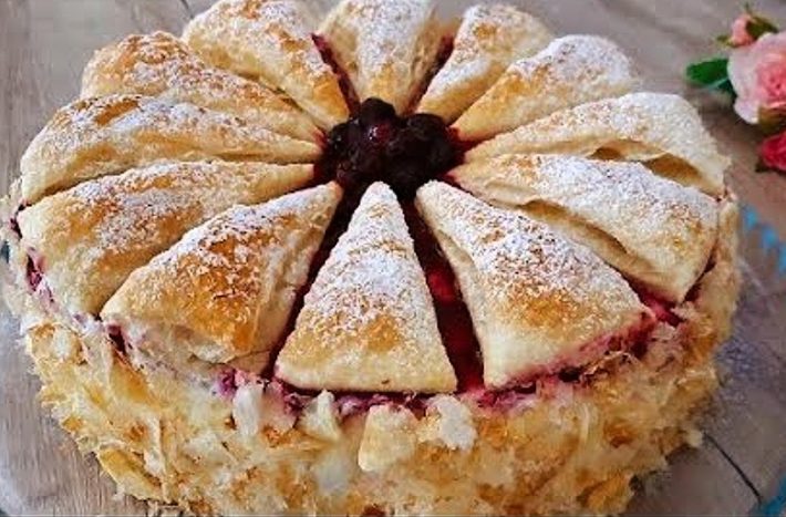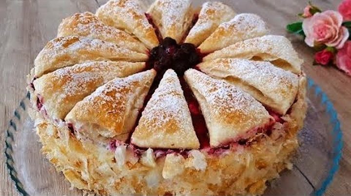 Nadýchaný dort plný krému ze šlehačky a řeckého jogurtu a náplní z lesního ovoce je opravdu delikátní. Navíc nemusíte na jeho základ péct žádný složitý korpus, vystačíte si totiž s obyčejným listovým těstem.