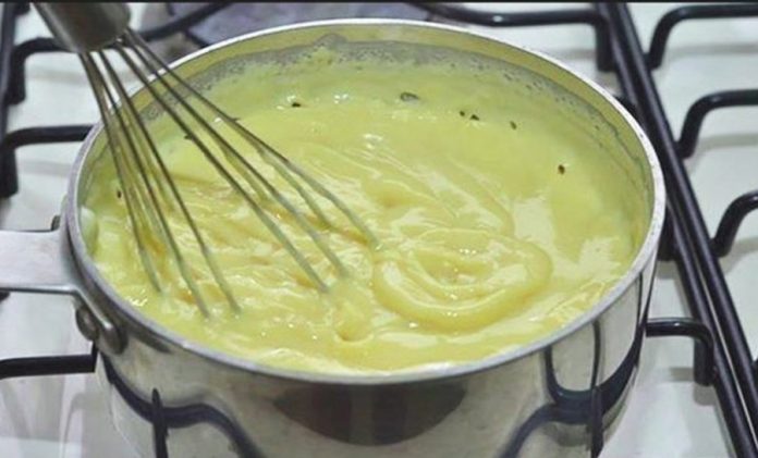 Postup je velmi podobný, jako u klasického krému jenom z másla a mléka. Začátek je v podstatě stejný. Dále se však do ohřívané směsi přidají také rozšlehané žloutky a dále, v případě zájmu o doladění chuti, se může přidat také vanilka. Buď klasická, nebo ve formě vanilkového extraktu.