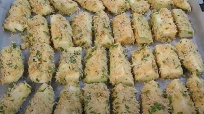 Poznámka: K cuketovým hranolkům můžete podávat smetanovou omáčku, jejíž přípravu je možné vidět níže ve videu. Skvěle poslouží i bylinkový nebo česnekový dip.