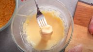 Kuřecí kousky obalte v těstíčku, poté v kukuřičných lupínkách a vyskládejte je na plech, pokrytý pečicím papírem, kde je polijte rozpuštěným máslem.