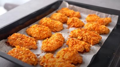 Křupavé kuřecí kousky pečte v předehřáté troubě na 220 °C po dobu 15–18 minut. Následně je podávejte s oblíbenou přílohou nebo dipem.