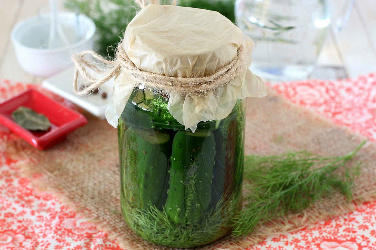 Nejprve si řádně vymyjte a sterilizujte zavařovací sklenice. To můžete provést buď v troubě na pečení nebo třeba v myčce na nádobí. Poté do každé z nich (pokud máte menší rozměry), nebo jedné větší sklenice vložte křenové listry, čerstvý kopr, několik oloupaných česnekových stroužků a následně i omyté polní okurky. Předtím se doporučuje okurky namočit na pár hodin do studené vody, aby se, jak se říká „hydratovaly“. Nyní si převařte litr a půl vody ve větším hrnci a poté přisypte do tekutiny krupicový cukr a sůl. Dobře promíchejte a vlijte ještě vodku. Připravený nálev je potřeba přelít do sklenice se zeleninou a nádobu překrýt gázou nebo jiným materiálem. Průběžně odebírejte z povrchu pěnu.