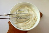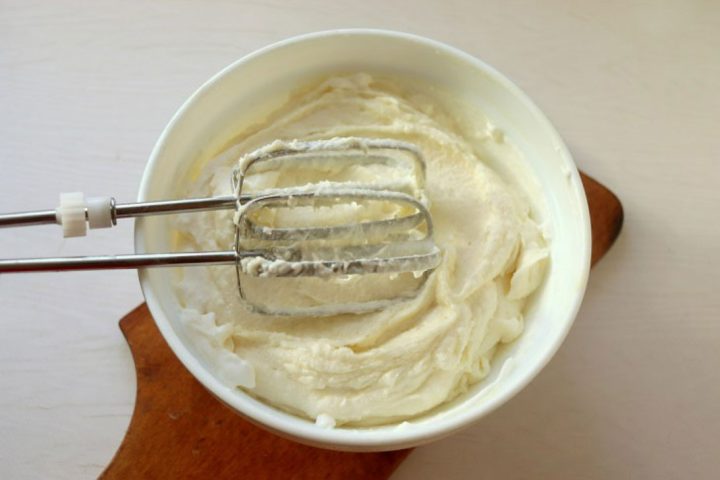 V čisté nádobě vyšlehejte zakysanou smetanu nebo smetanu. Do krému po částech přidejte vychladlou krupici a pokračujte se šleháním. Získáte velmi aromatický a jemný krém.