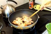 V další fázi si na pánev kápněte malé množství slunečnicového oleje a až bude rozpálený, rozprostřete na něj ochucená kuřecí křídla.