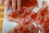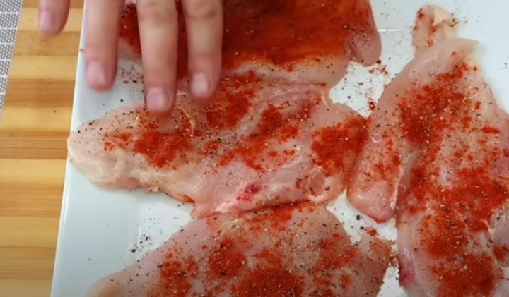 Kuřecí prsa podélně rozpulte a ochuťte je z obou stran sladkou paprikou, solí a pepřem. Nakrájejte si cibuli na čtvrtkolečka a rajče na kostičky. Uvařte si vejce natvrdo a pak ho nastrouhejte na hrubém struhadle, stejně tak nastrouhejte i sýr.