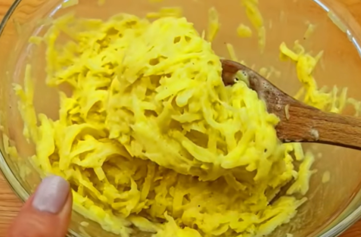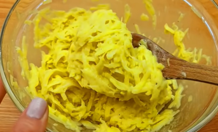 Na hrubém struhadle strouhejte oloupané a dobře omyté brambory. Ty přesuňte do mísy, kde je zalijte vodou, nechte chvíli odmočit, poté z nich vymačkejte přebytečnou vodu a začněte tvořit těsto na bramborák. K bramborám přidejte vejce, ochuťte je solí a pepřem, přidejte česnek a promíchejte. Dále přidejte také mouku, která zajistí zahuštění těsta.